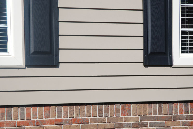 Insulated siding panel, replacement windows trimmed with metal, and raised panel shutters